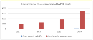 The number of environmental PILs is increasing, particularly after the Environmental Protection Law (2014) and the Civil Procedure Law (2017) clarified the framework for these cases.