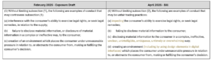 1. Removal of ‘unreasonably’ in the ‘manipulate the consumer’ limb: The scope of the prohibition has expanded, as ‘unreasonably’ has been removed from definition, in relation to manipulation of the consumer. ‘Unreasonably’ remains in the ‘distortion of the consumer’s decision-making environment’ limb.
