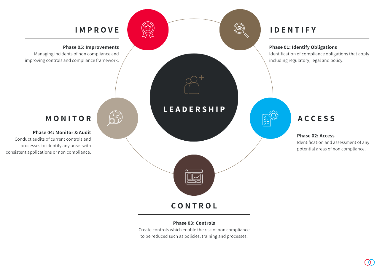 Compliance management is the art (ART!) of understanding obligations, developing controls to manage those obligations, managing those obligations and controls and then embedding them into training and communication strategies. It’s a cycle!