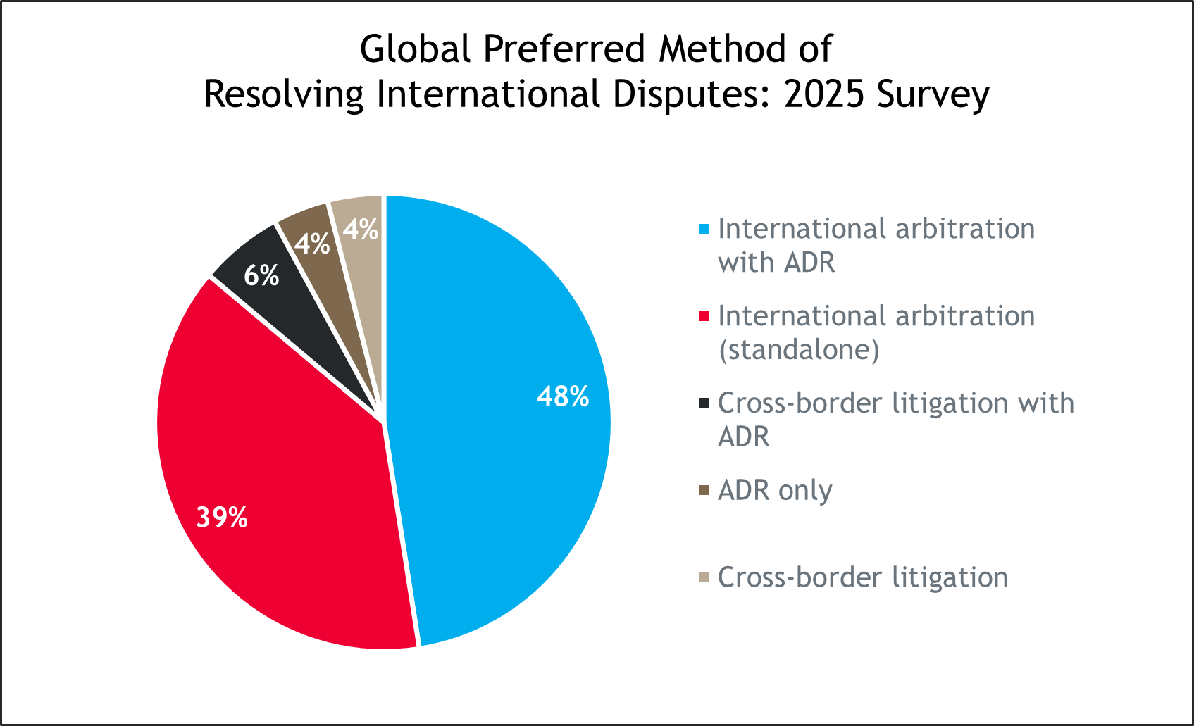 [4] Page 8 in the 2025 Survey. As compared to Europe-based respondents who preferred standalone arbitration (51%) over arbitration combined with ADR (42%) in the 2025 Survey.