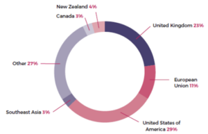 Share of Australia’s outward foreign investment stocks by destination 2022